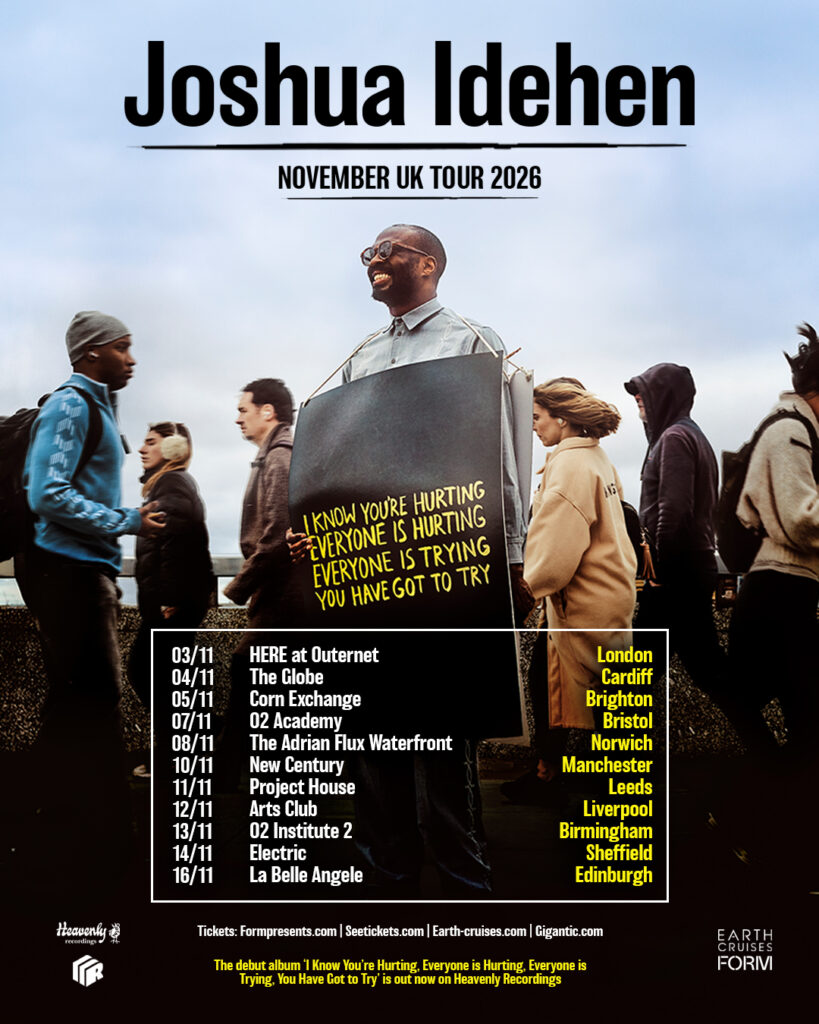 Following the release of their sensational debut album ‘I Know You’re Hurting, Everyone is Hurting, Everyone is Trying, You Have Got to Try‘ Joshua Idehen and producer Ludvig Parment return to the UK for their November tour.